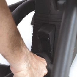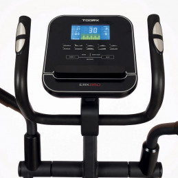 L'ellittica ERX-650 è una macchina da fitness avanzata, progettata per offrire allenamenti completi a basso impatto e massima efficienza. Grazie al sistema di frenaggio magnetico con regolazione elettronica su 24 livelli, puoi personalizzare l’intensità dell’allenamento in base alle tue esigenze. Il volano da 16 kg garantisce una pedalata fluida e costante, mentre la lunghezza del passo di 510 mm e i pedali extra large regolabili su 3 livelli di inclinazione (0°, 4°, 8°) assicurano comfort ed ergonomia durante la sessione.