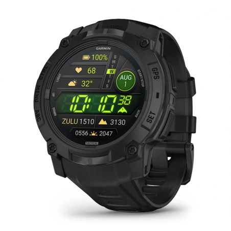 La Instinct 3 Tactical Edition è una smartwatch multisport progettata per un utilizzo intensivo in ambito tattico e outdoor. Combina un design robusto conforme agli standard militari con un display AMOLED luminoso e funzioni avanzate per la navigazione, la salute e il fitness.